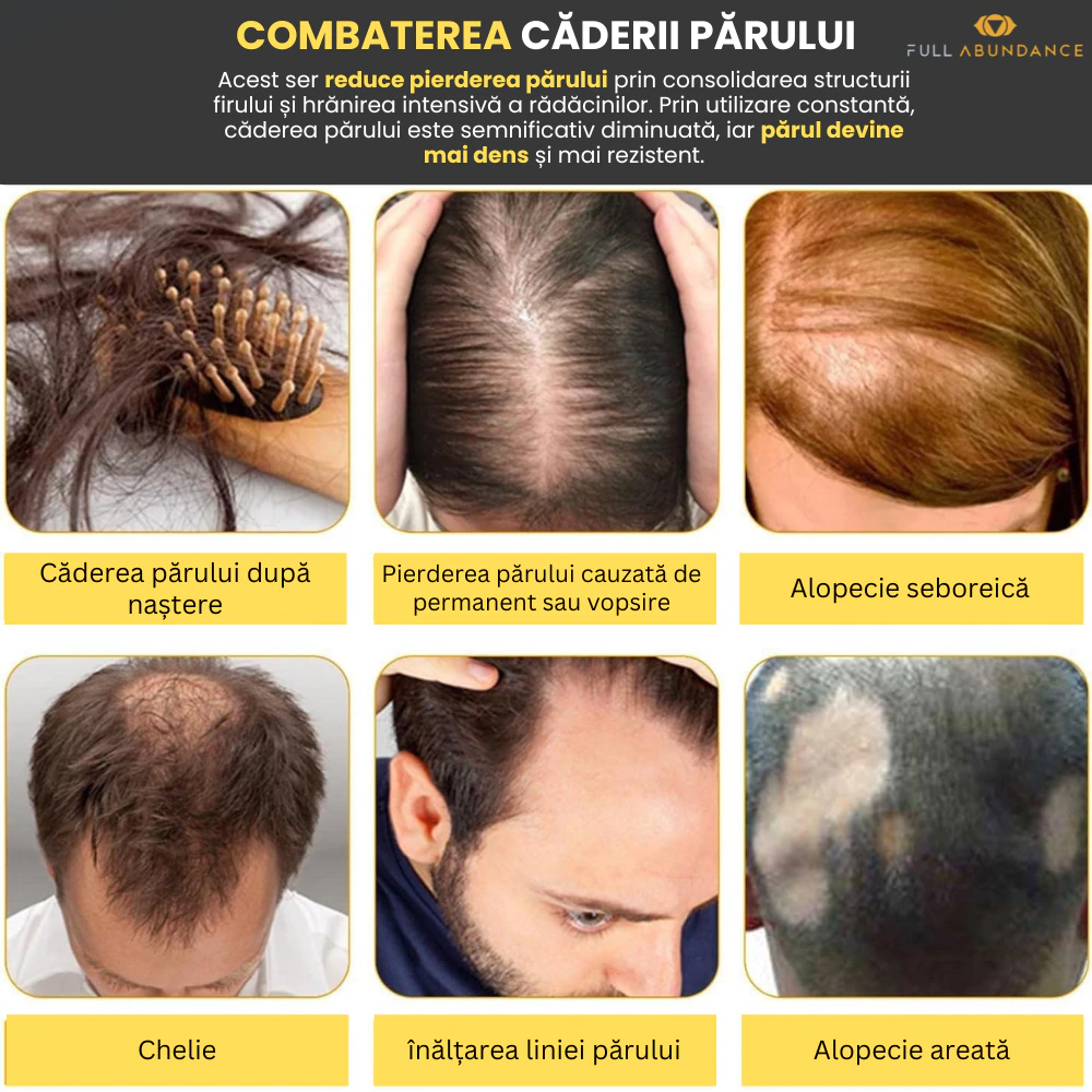 - Reduce Caderea Firului de Par: Prin consolidarea structurii firului si hranirea intensa a radacinilor, serul reduce semnificativ pierderea parului, oferindu-i un aspect mai des si mai puternic.