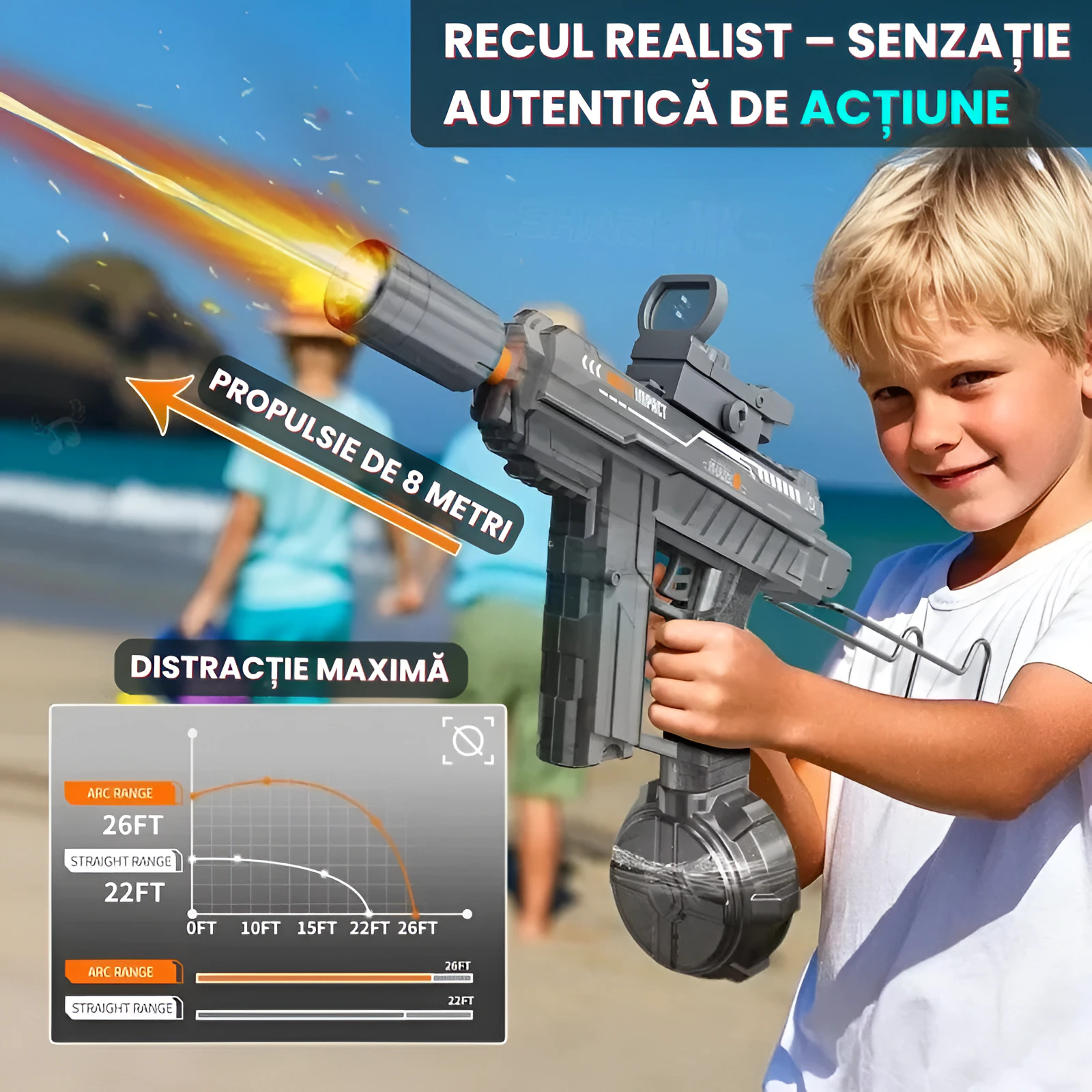 Transforma fiecare zi torida intr-o aventura de neuitat cu Pistolul Cu Apa Electric 2025 POOD. Conceput pentru distractie maxima si siguranta deplina, acest gadget este alegerea perfecta pentru copii, adolescenti si adulti. Cu reincarcare automata, jet puternic si iluminare LED integrata, experienta de joaca devine mai reala, mai interactiva si mai captivanta ca niciodata.