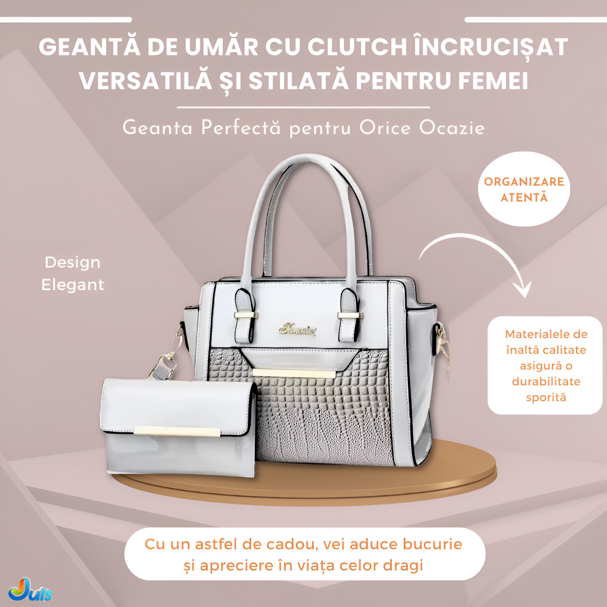 Descoperiti rafinamentul absolut cu Geanta De Umar Cu Poseta, un accesoriu deosebit care imbina aspectul sofisticat cu un angajament ecologic. Fiecare detaliu al acestei geante este lucrat cu meticulozitate pentru a oferi atat calitate superioara, cat si durabilitate exceptionala.