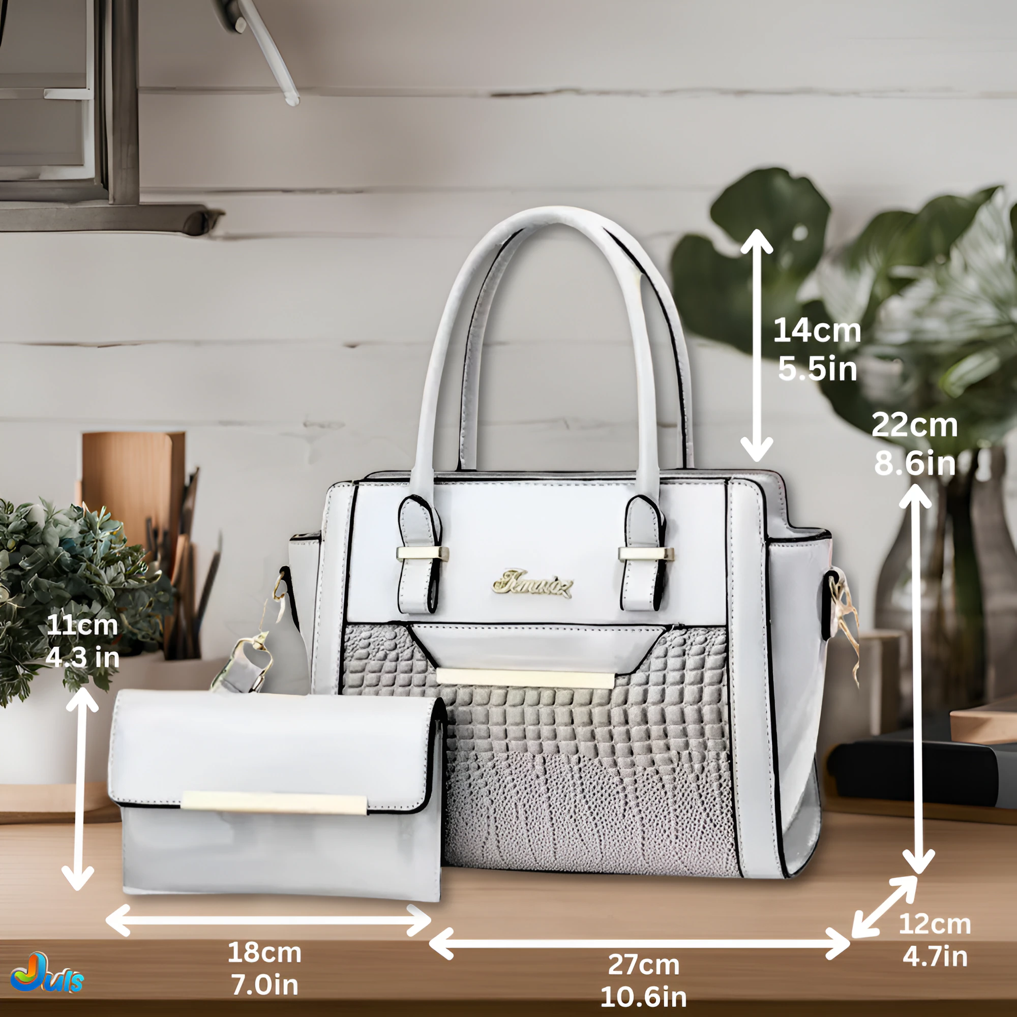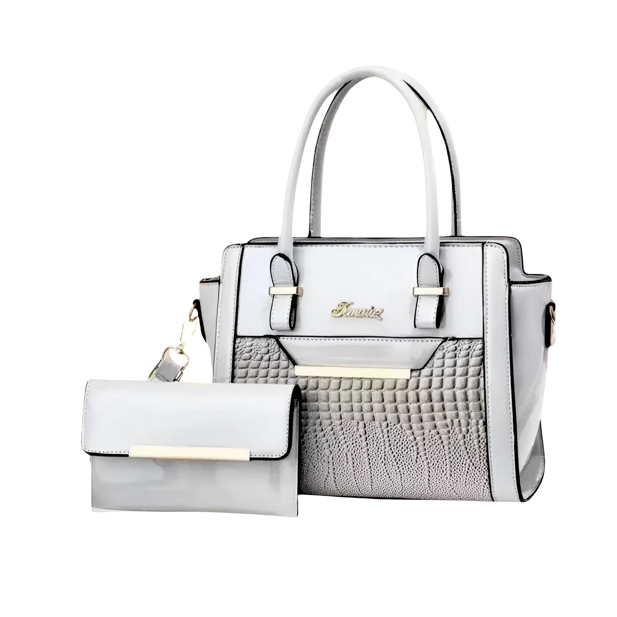 Geanta cu Poseta, Piele Sintetica Premium, Design Elegant, Durabilitate Superiora, 26x21cm, Alb-Gri