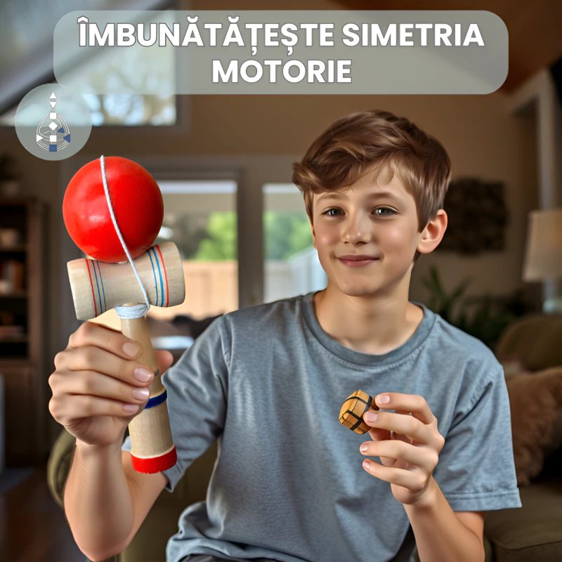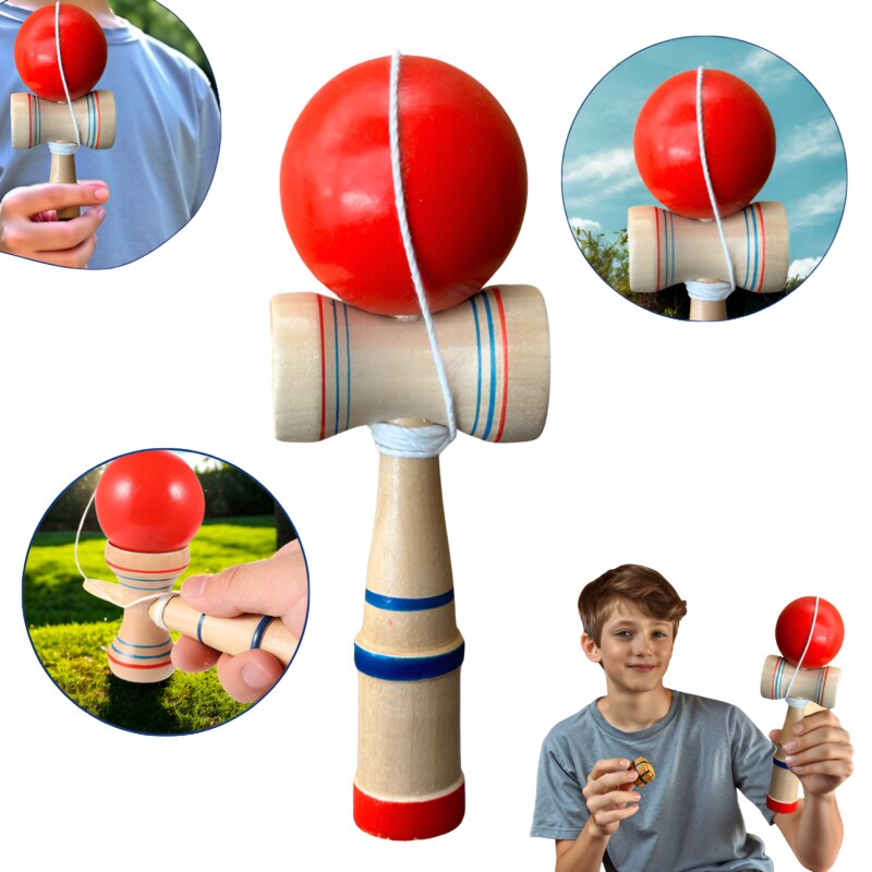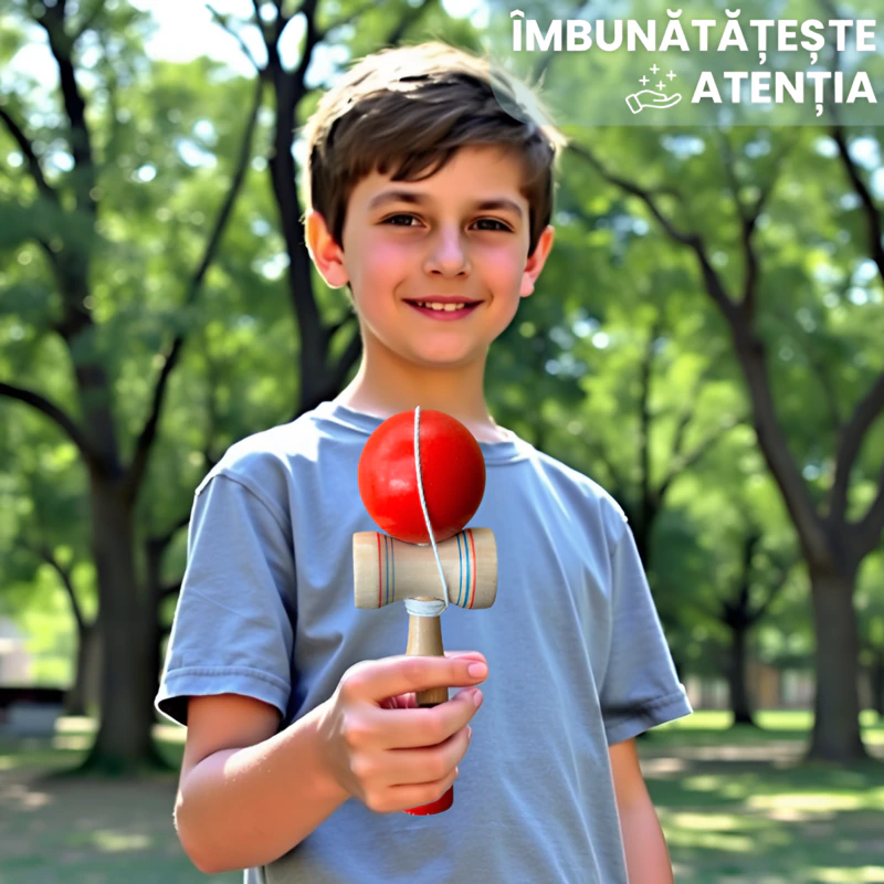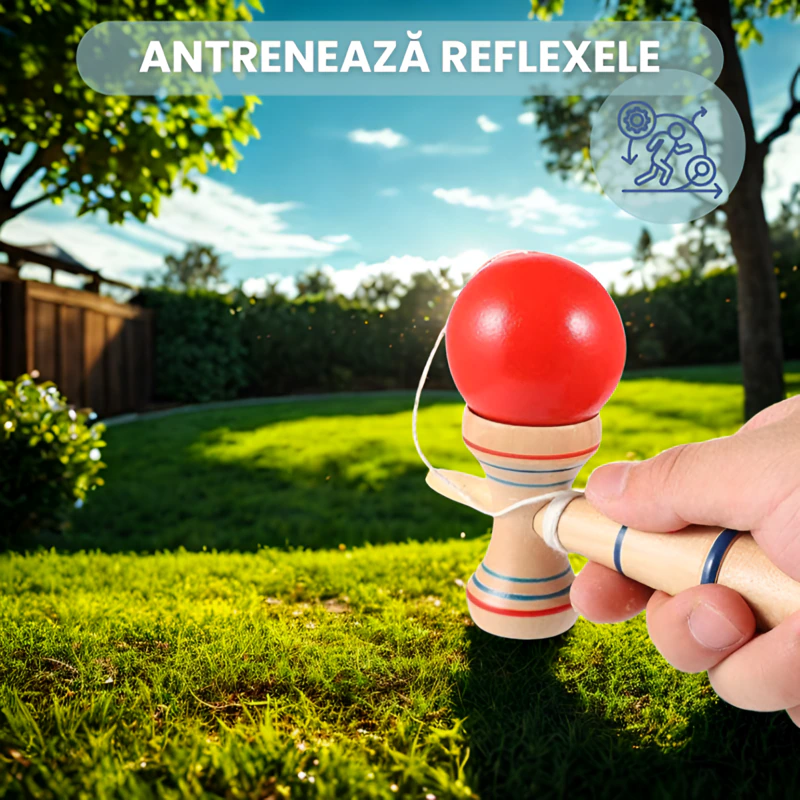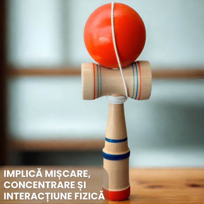 - Include: 1 x Kendama din lemn de artar, 1 x bila cu orificiu central, sfoara montata