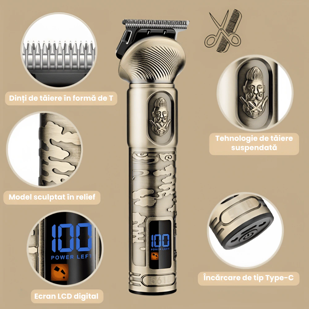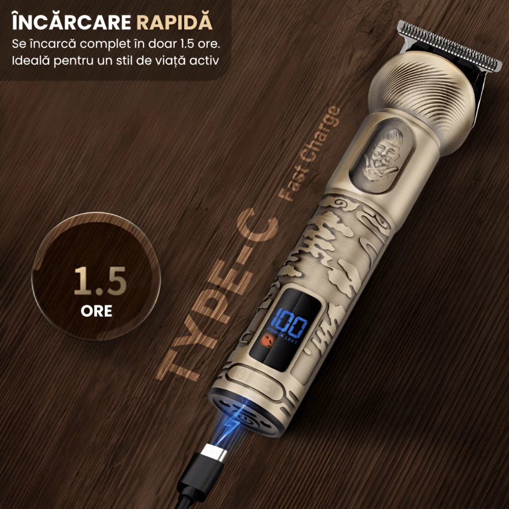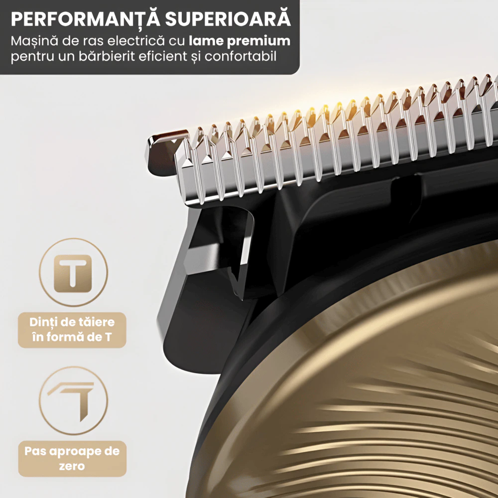 Masina de Tuns Electrica Premium, Ras de Precizie cu Lame de Otel, 6 Capete Taiere, Tehnologie Avansata, Ergonomic, Incarcare Type-C, Ecran LCD, Performanta Superioara pentru Barbierit si Ingrijire Completa, Auriu