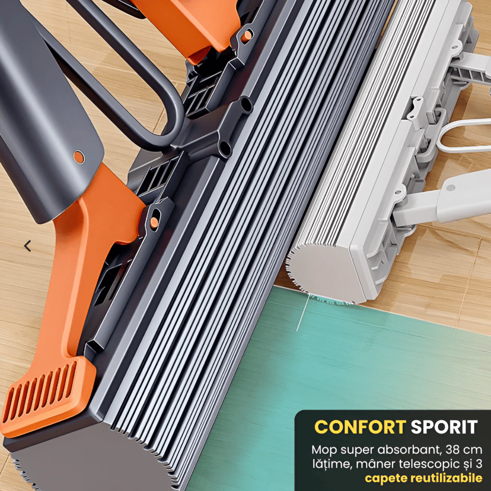 Mopul cu Burete Super Absorbant este alegerea perfecta pentru cei care doresc o curatare rapida, eficienta si igienica a locuintei lor. Cu capete reutilizabile si un sistem de stoarcere inovator, curatenia devine mai usoara si mai placuta. Economisiti timp si bani, mentinand in acelasi timp igiena maxima.