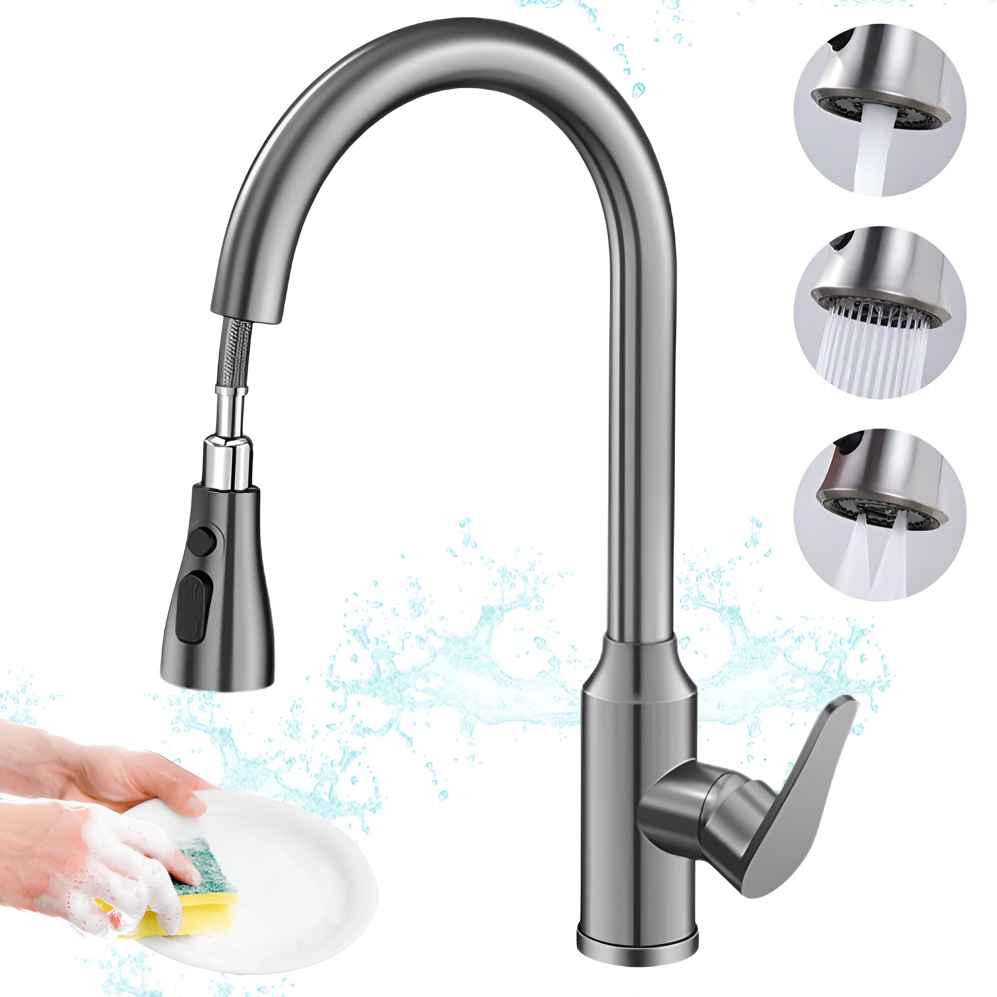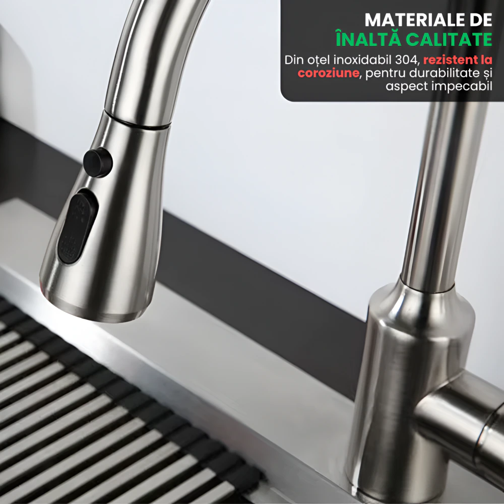 Cea mai inalta Calitate, Robinet Bucatarie Tragere Extensibila, Otel Inoxidabil 304, 3 Moduri Jet Apa