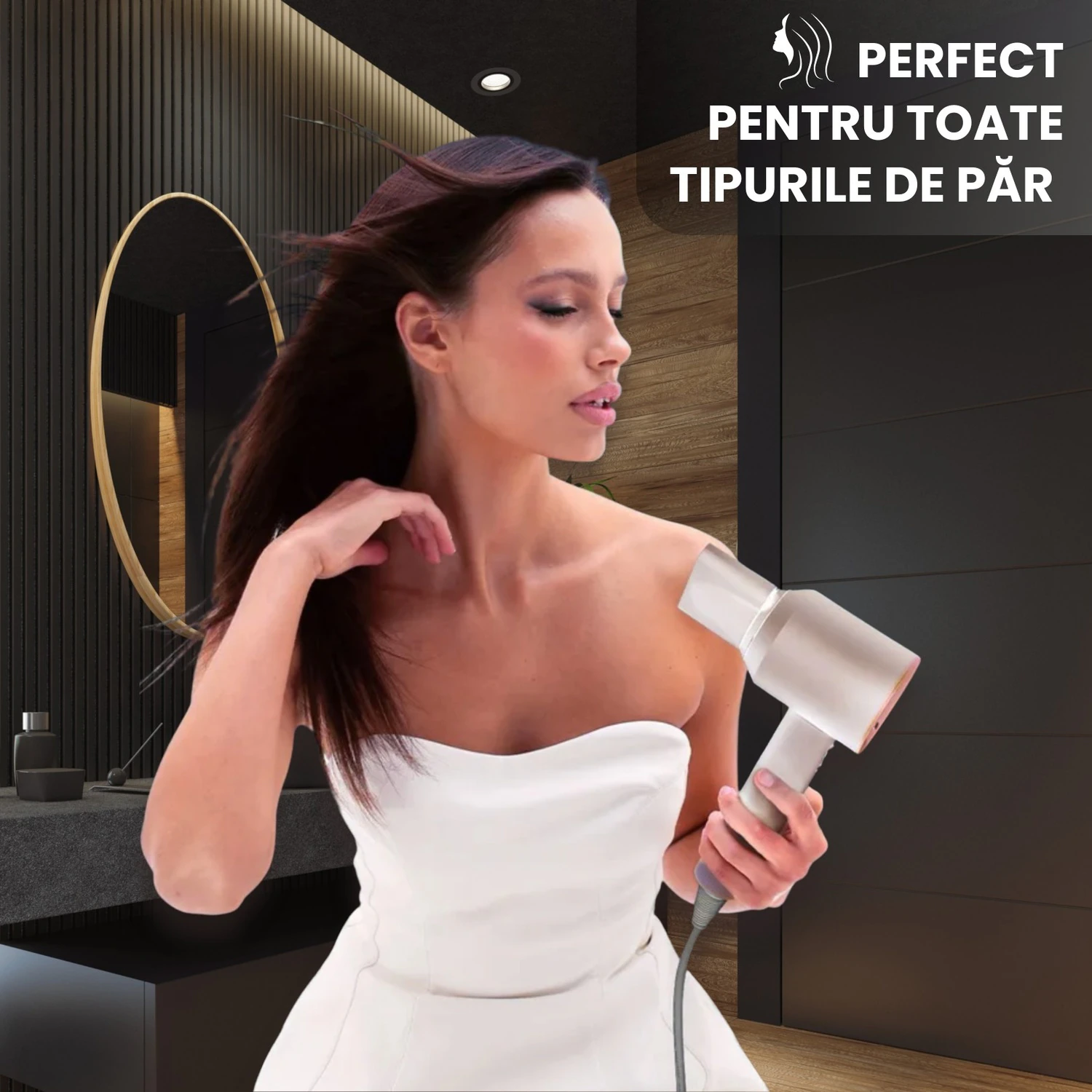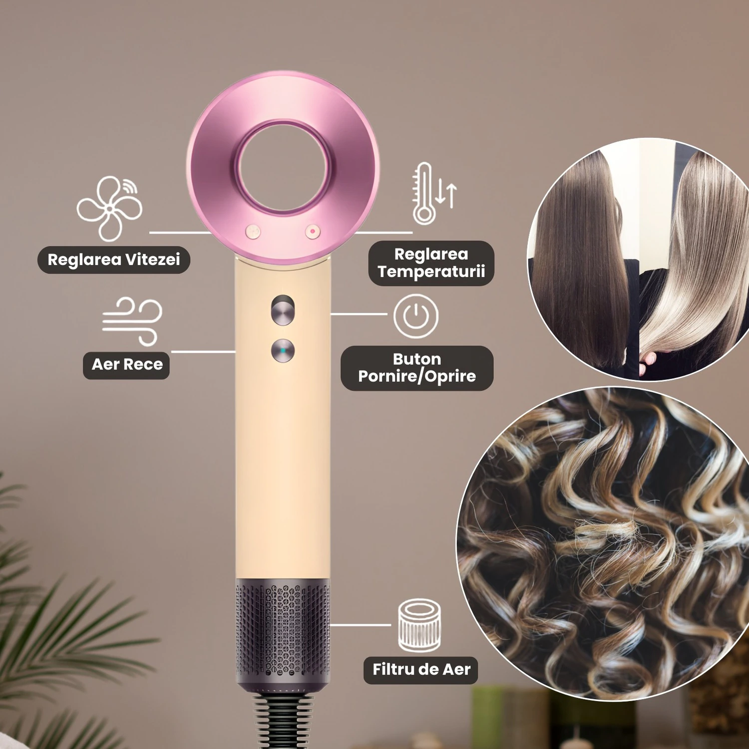• Alege temperatura ideala: 60°C pentru par fin, 80–100°C pentru par normal/gros.