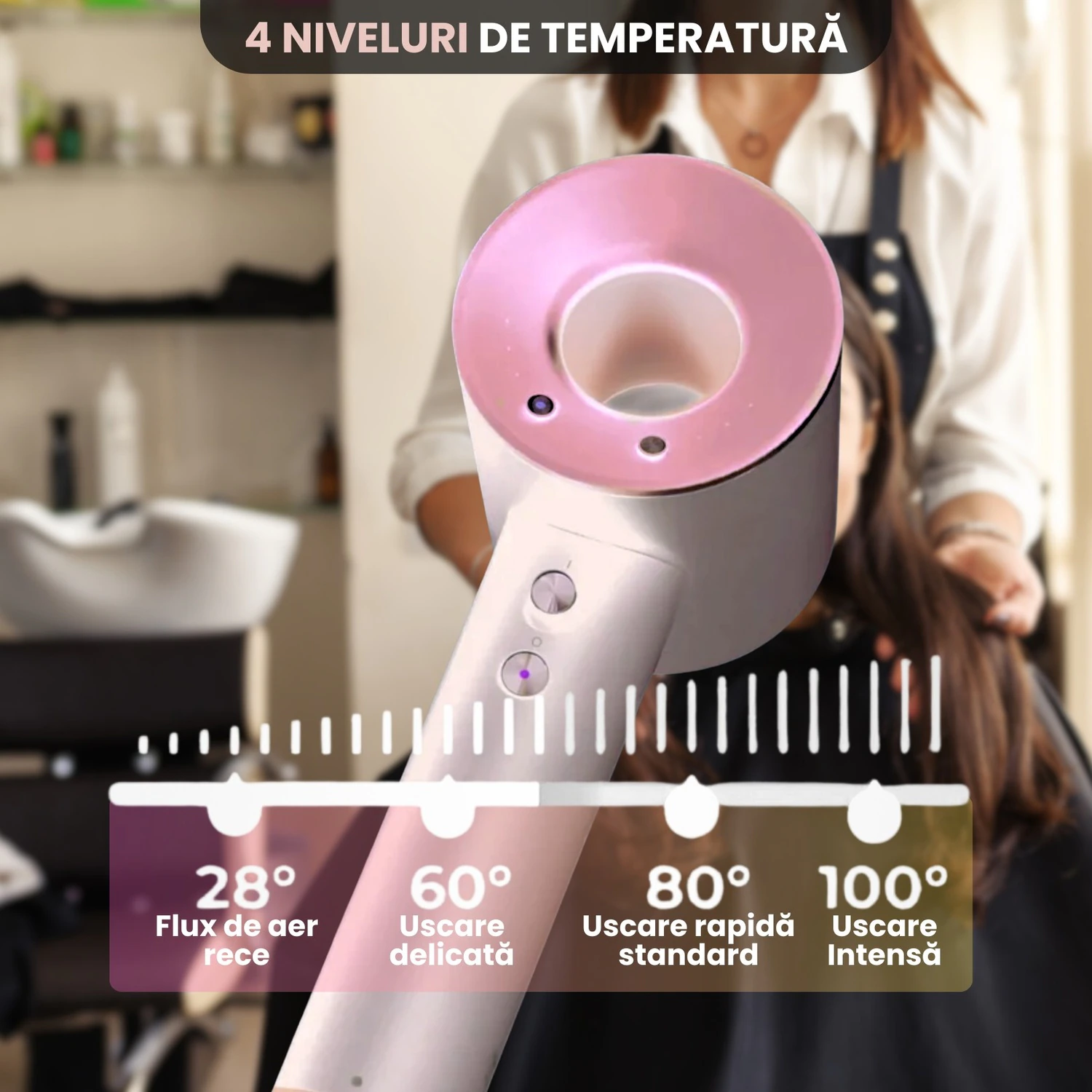• Setari Temperatura: 4 (100°C, 80°C, 60°C, Aer Rece 28°C)
